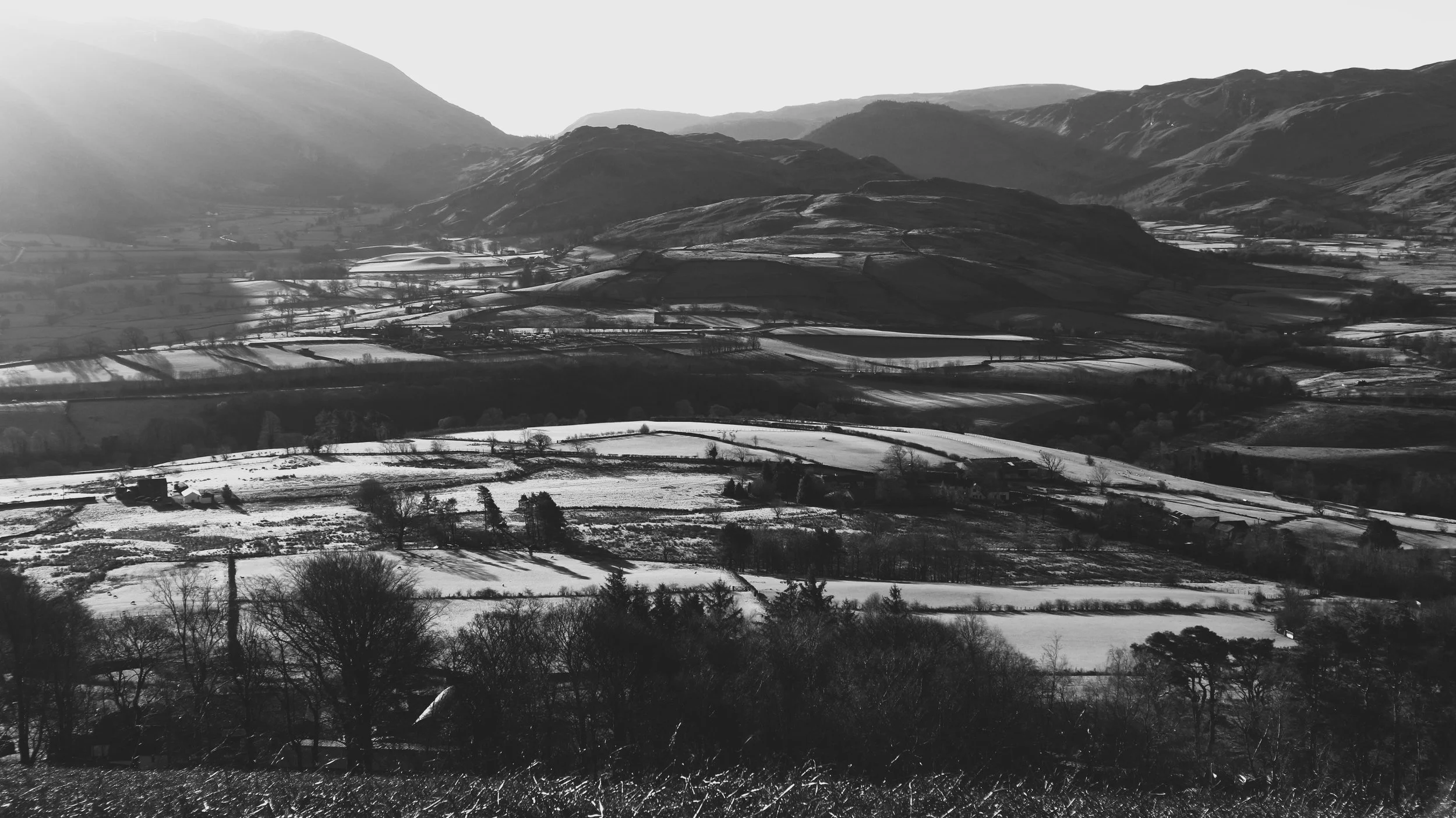 'Over the stream were more pastures rising to a steeper slope. Now that the sun was wheeling around to the south, these hills were dark, half in silhouette' from The Last Horizon
